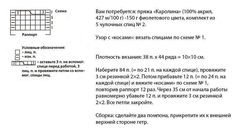 Гетры спицами схемы и описание