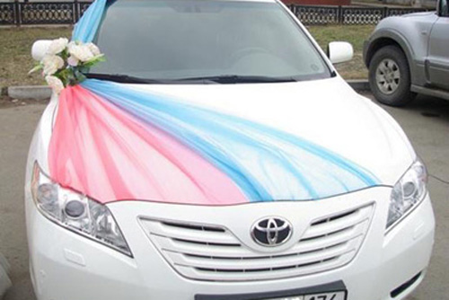 Во время оформления свадебной машины помните о том, что следует учитывать цветовую гамму, в которую входит как цвет самой машины, так и цвета нарядов невесты и жениха. Свадебные украшения на машину должны содержать цвета, гармонирующие и контрастирующие с основной цветовой гаммой.